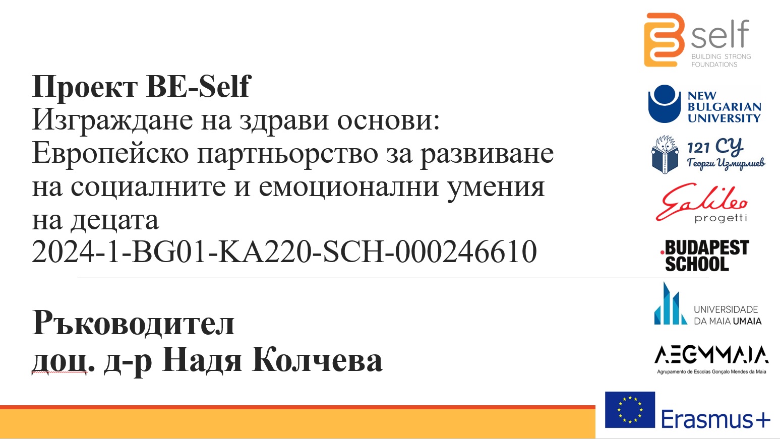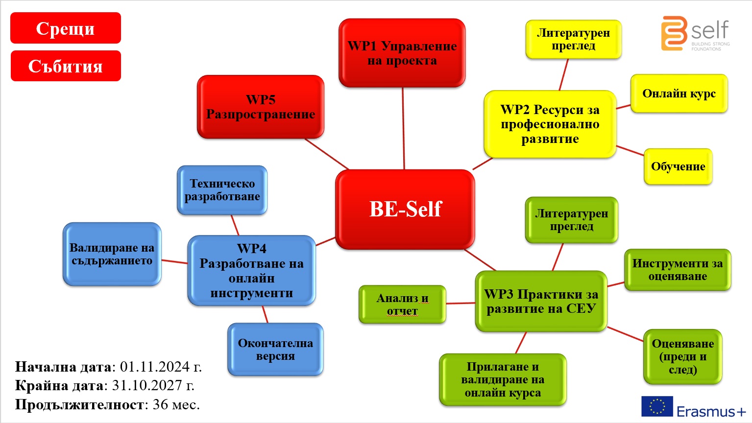 Проектът BE-SELF има за цел да подобри СЕУ в европейските училища чрез разработване на инструменти и процедури за професионално развитие, които могат да оценят, наблюдават и подобрят отношението на учителите към СЕУ и прилагането на СЕУ практики. Мотивацията за този проект се основава на признанието, че СЕУ е критичен компонент на образованието, за който е доказано, че има положително въздействие върху академичните постижения, благосъстоянието и цялостния успех на учениците в живота. Въпреки това много учители може да нямат необходимите умения и обучение, за да включат ефективно СЕУ в своите преподавателски практики.